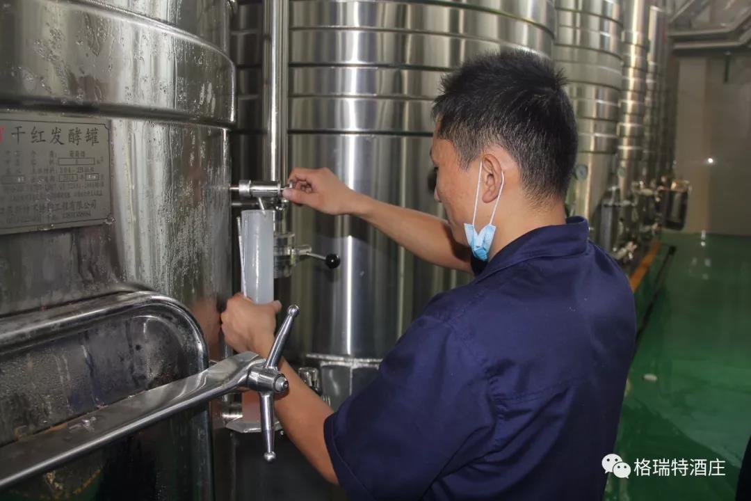 從采摘到進罐發(fā)酵,整個過程是即時和快捷的,格瑞特酒莊能做到這一點,得益于酒莊+基地+農(nóng)戶的產(chǎn)業(yè)模式,園區(qū)內(nèi)如此大面積的葡萄種植園全部為酒莊自營,全標準化的園區(qū)設計為機械化操作打下了堅實基礎,統(tǒng)一的種植管理規(guī)范和操作技術(shù)要求以及持續(xù)不斷的技術(shù)培訓工作,既保證了葡萄的高品質(zhì),又踐行了那句土地變綠色工廠,農(nóng)民轉(zhuǎn)產(chǎn)業(yè)工人的企業(yè)愿景。