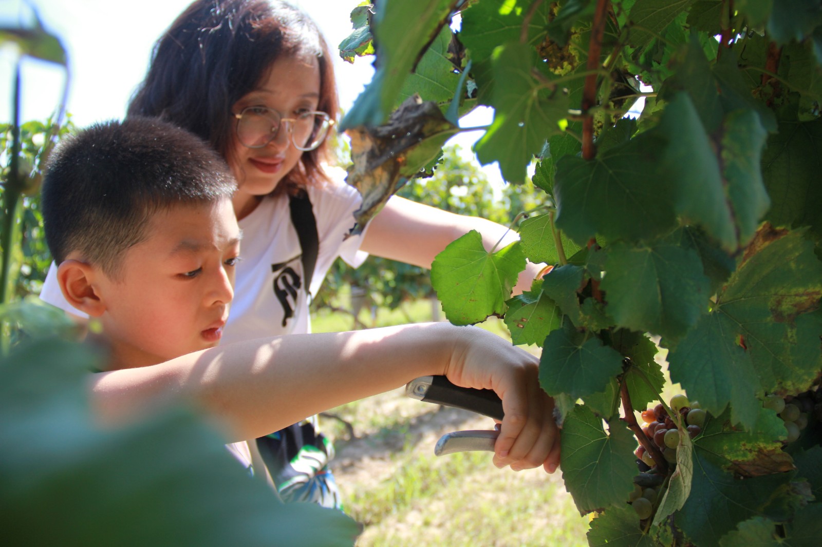 采摘釀酒葡萄:接下來(lái)就是需要大、小朋友們親自實(shí)踐的采摘葡萄環(huán)節(jié),入園前導(dǎo)游為他們分發(fā)了盛放葡萄的籃子和剪刀,在叮囑完大家如何安全使用工具后進(jìn)行了操作流程演示,采摘的標(biāo)準(zhǔn)其實(shí)很簡(jiǎn)單:只剪顆粒飽滿、沒(méi)有發(fā)霉、萎縮的葡萄果實(shí)。因?yàn)椋挥袃?yōu)質(zhì)的原料才能釀出高品質(zhì)的葡萄酒!
