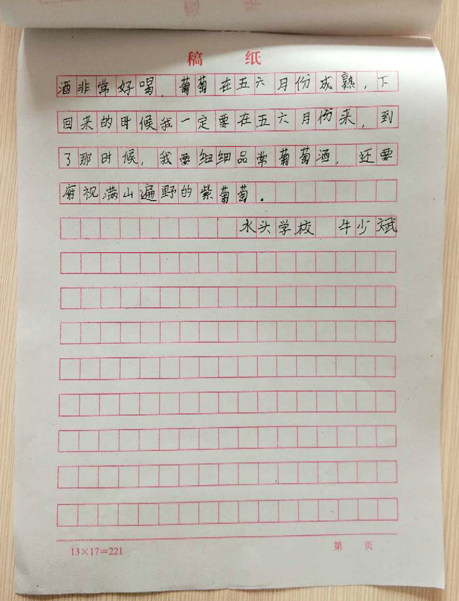怎么樣!可愛的同學(xué)們在參觀格瑞特酒莊之后,寫下了一篇篇觀后感。這稚嫩的字體,用心的言語,表達(dá)了他們對格瑞特酒莊 的滿意與祝福。展信如晤,見字如面,一紙信箋,如此之遠(yuǎn),又如此之近。