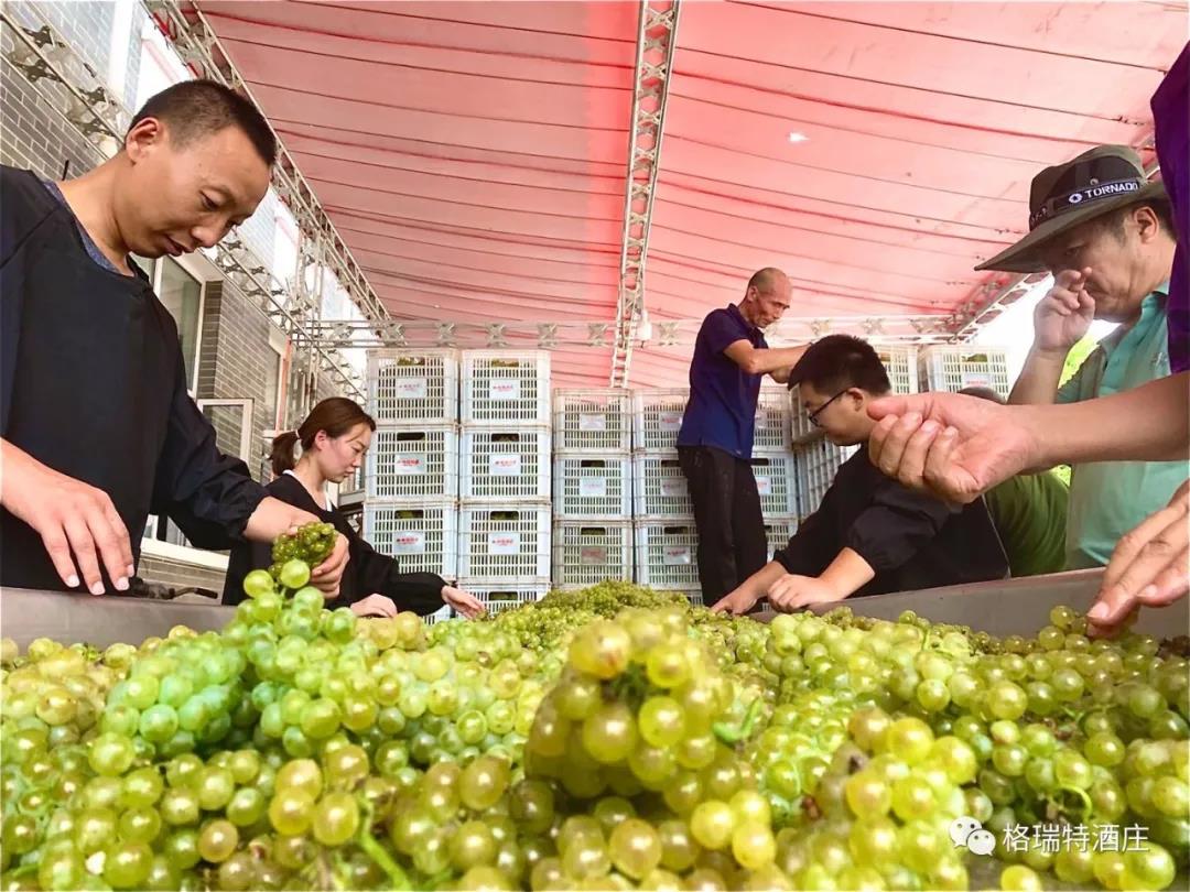 從采摘到進罐發(fā)酵,整個過程是即時和快捷的,格瑞特酒莊能做到這一點,得益于酒莊+基地+農(nóng)戶的產(chǎn)業(yè)模式,園區(qū)內(nèi)如此大面積的葡萄種植園全部為酒莊自營,全標準化的園區(qū)設計為機械化操作打下了堅實基礎,統(tǒng)一的種植管理規(guī)范和操作技術(shù)要求以及持續(xù)不斷的技術(shù)培訓工作,既保證了葡萄的高品質(zhì),又踐行了那句土地變綠色工廠,農(nóng)民轉(zhuǎn)產(chǎn)業(yè)工人的企業(yè)愿景。